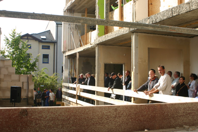 Am 12.September 2013 wurde zünftig Richtfest gefeiert – nicht als Bergfest, sondern schon weit hinter der Bergspitze, denn im April sollen die ersten Mieter einziehen. Kein unrealistischer Termin, wie der Baustand am Nordflügel zeigt.