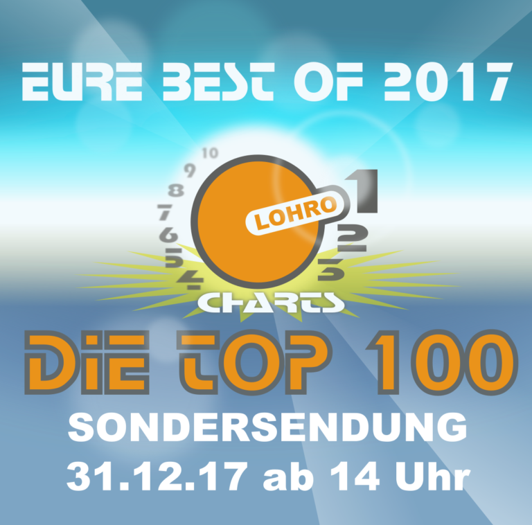 Am Sonntag, 31. Dezember 2017, lassen wir das Jahr mit eurer Musikwahl ausklingen. Von 14–00 Uhr präsentieren wir die Jahresauswertung der LOHRO-Charts (von 19–21 Uhr wird pausiert und der Phlegmaexpress sendet).
