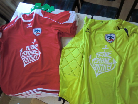 Frühstück mal anders – das erlebten heute Vormittag die Nachwuchskicker des Rostocker FC. Zu Gast hatten sie die Band „Feine Sahne Fischfilet“ und die brachten ne Menge neuer Trikots mit.