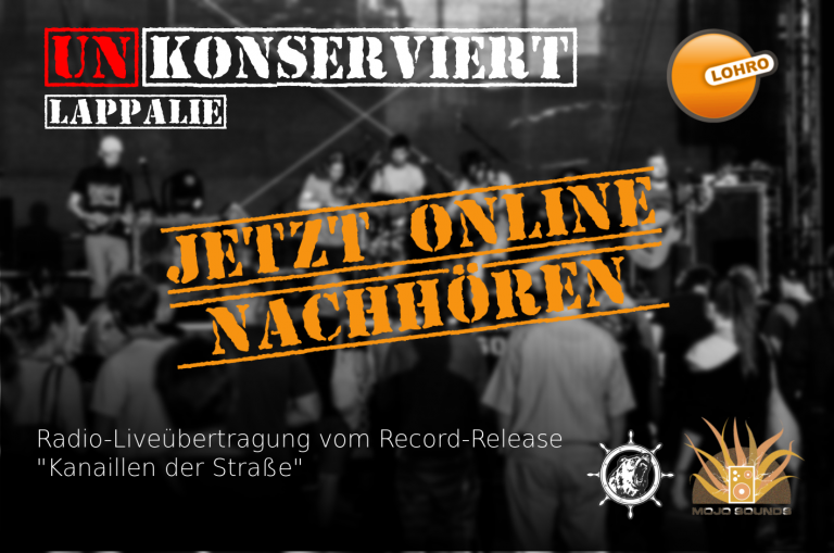 Und genau deswegen sind wir von LOHRO auch am Freitag beim Releasekonzert des neuen Albums „Kanaillen der Straße“ im Peter-Weiss-Haus mit dabei. Wer in persona aber nicht erscheinen kann, dem bleibt noch die Möglichkeit, die Konzertübertragung im Rahmen unserer Reihe UNKONSERVIERT auf unserer UKW-/Kabelfrequenz sowie über unserem Livestream zu lauschen – am Freitag, 19. Januar 2018, ab 22 Uhr!